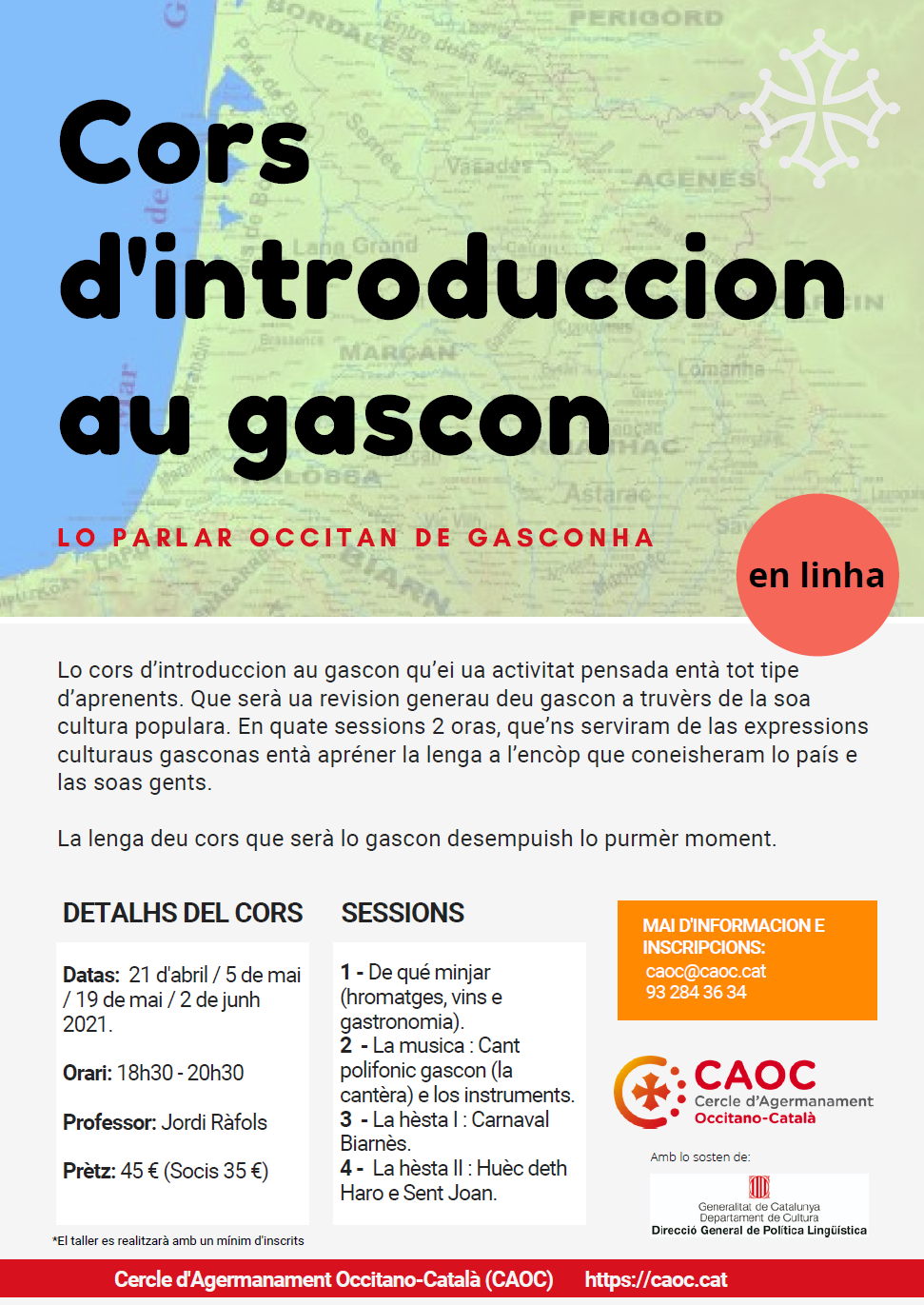 Lo cors d’introduccion au gascon qu’ei ua activitat pensada entà tot tipe d’aprenents. Que serà ua revision generau deu gascon a truvèrs de la soa cultura populara.